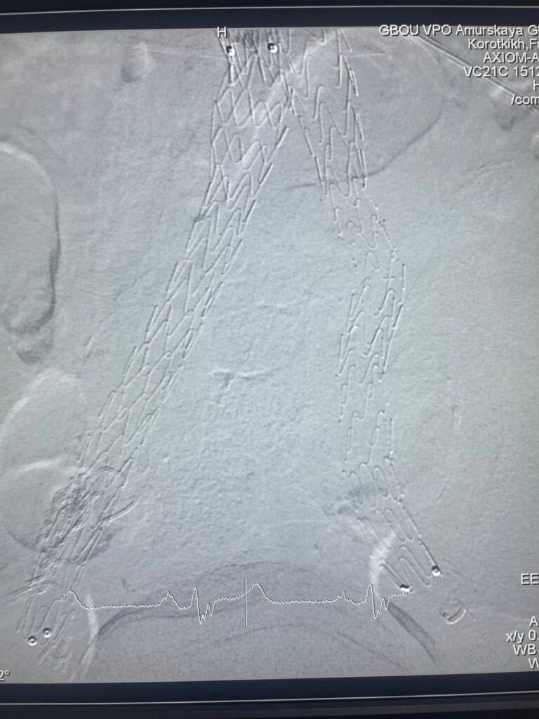 В клинике кардиохирургии выполнили операцию по эндопротезированию брюшного отдела аорты и подвздошных артерий с эндофиксацией